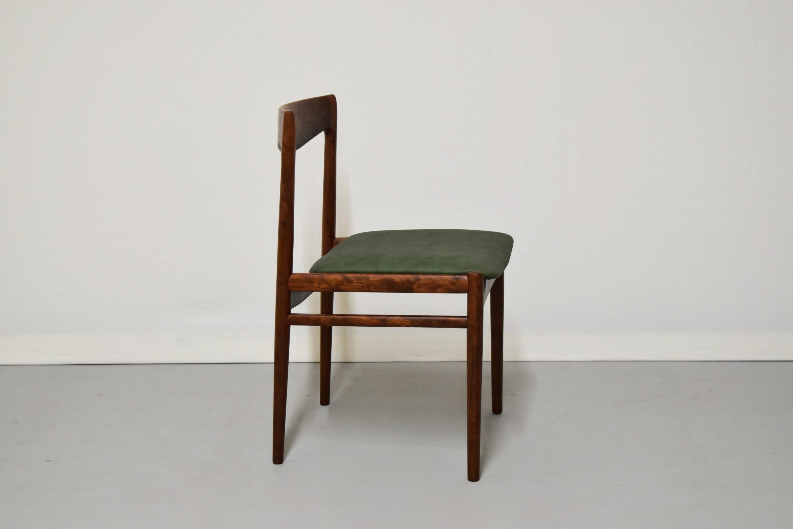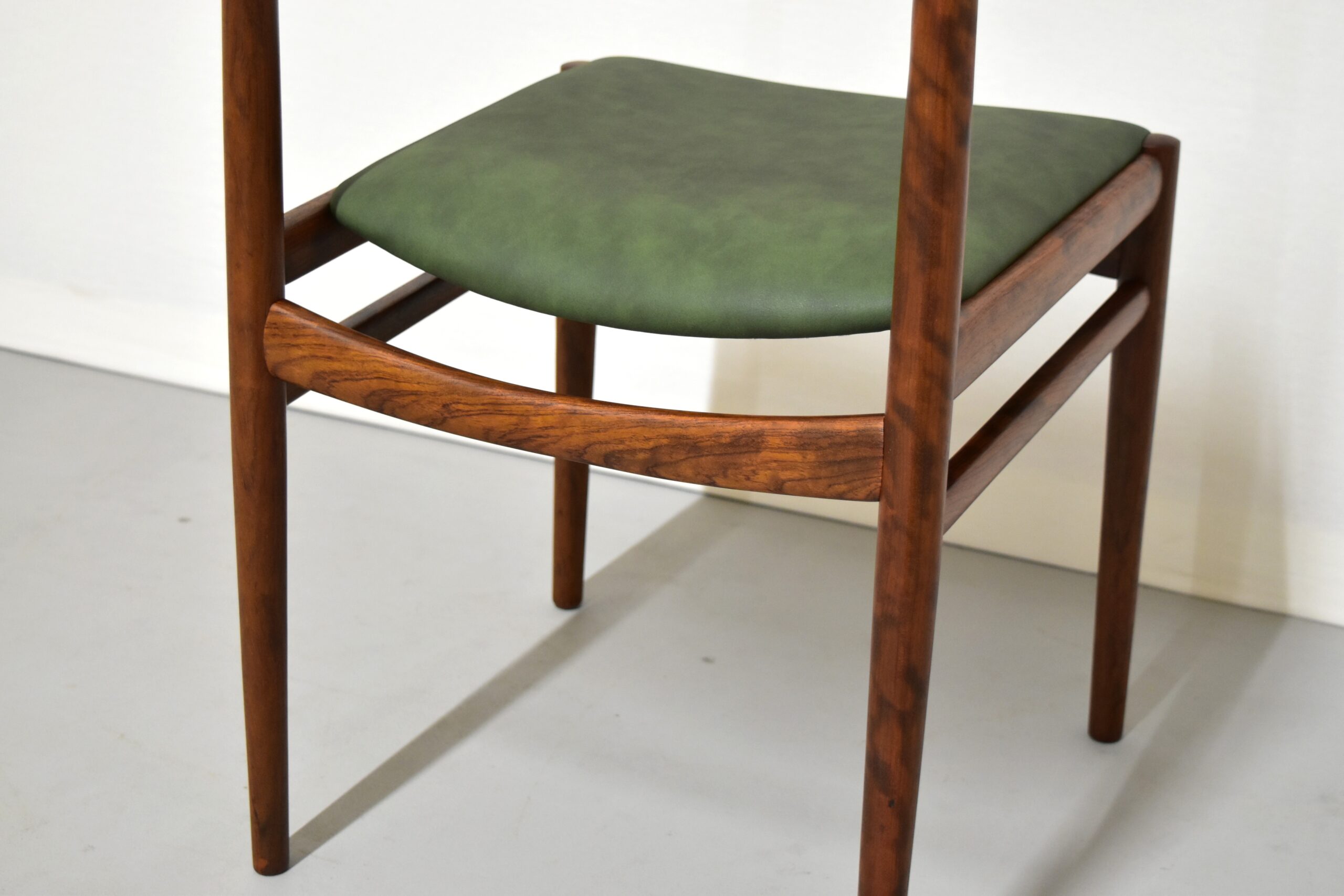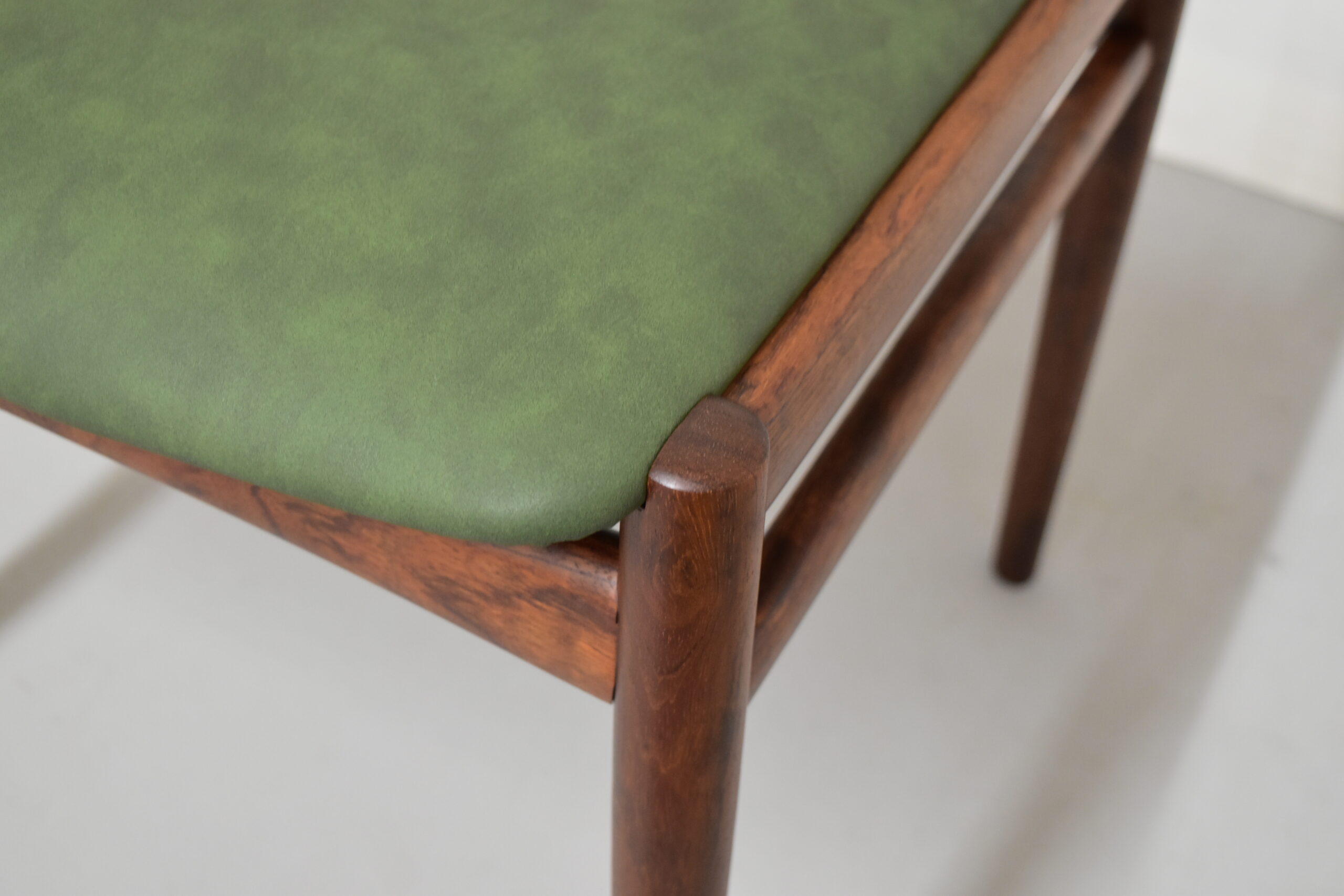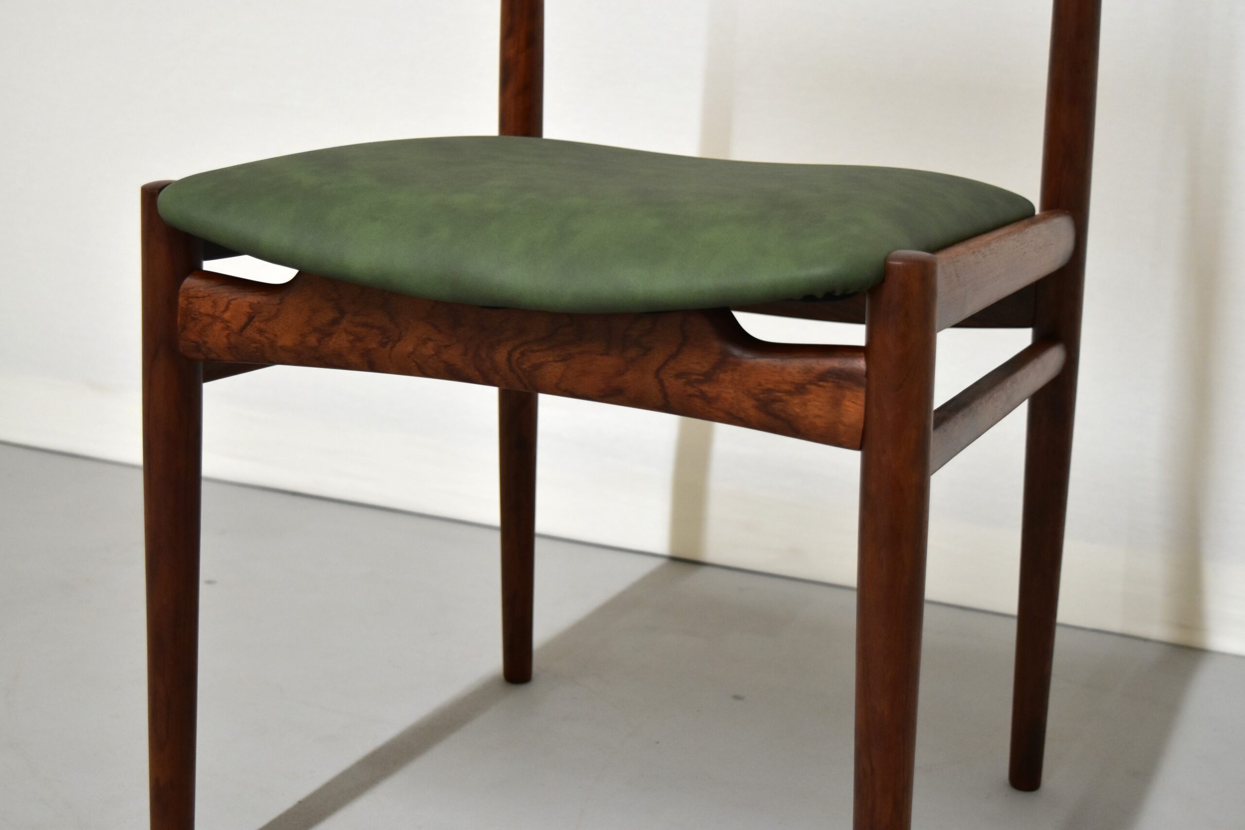 ご希望いただき、座面はグリーンのレザーで張り替えております。