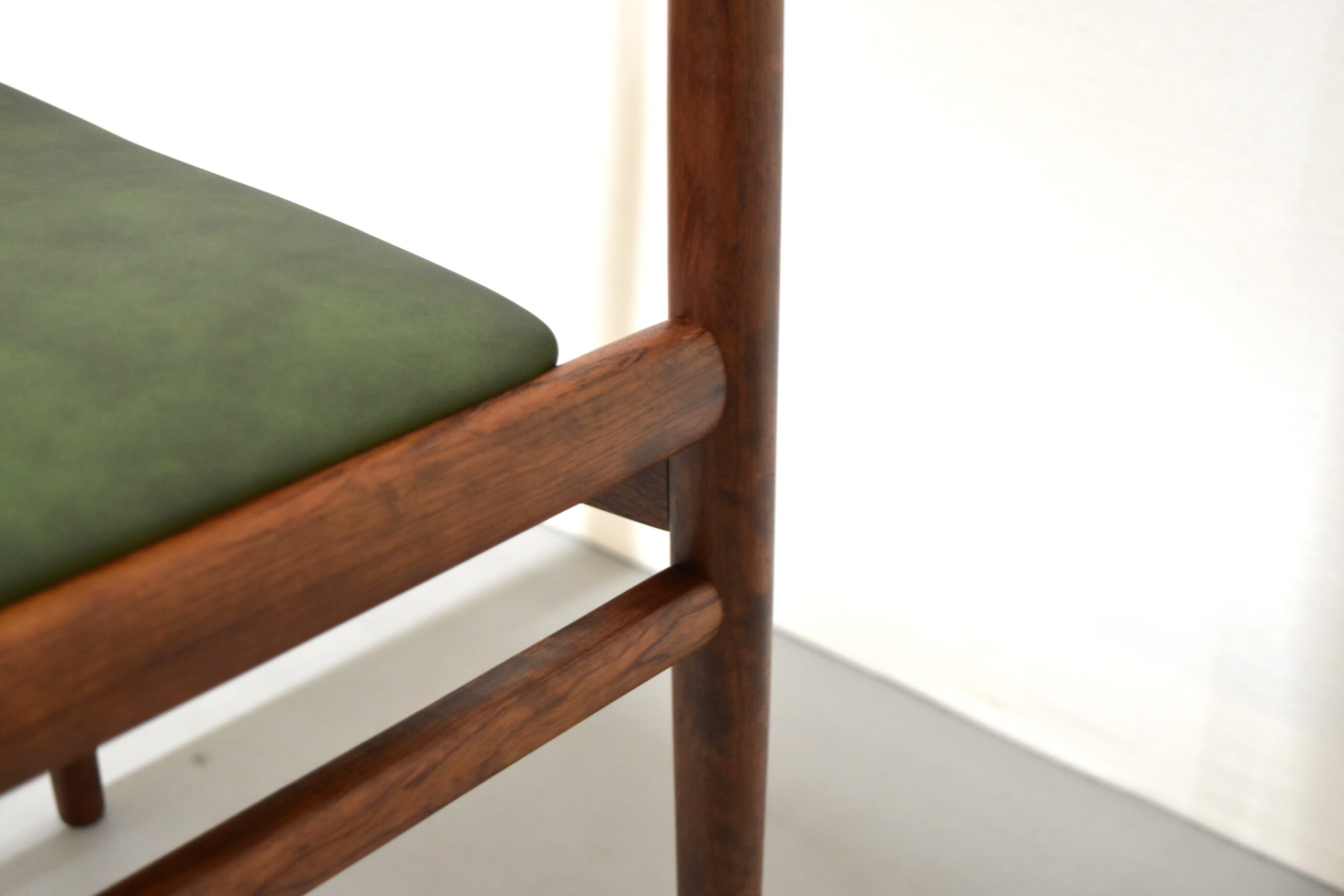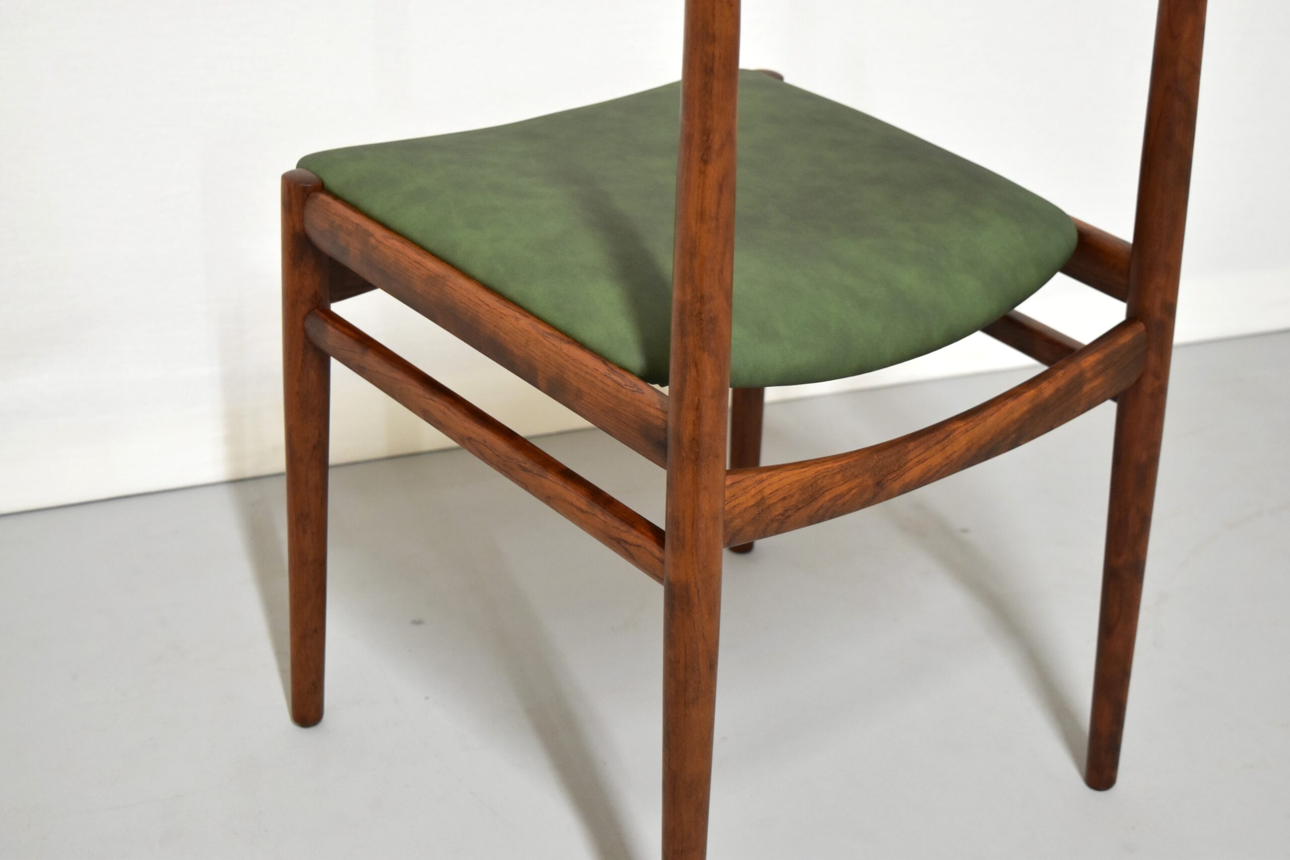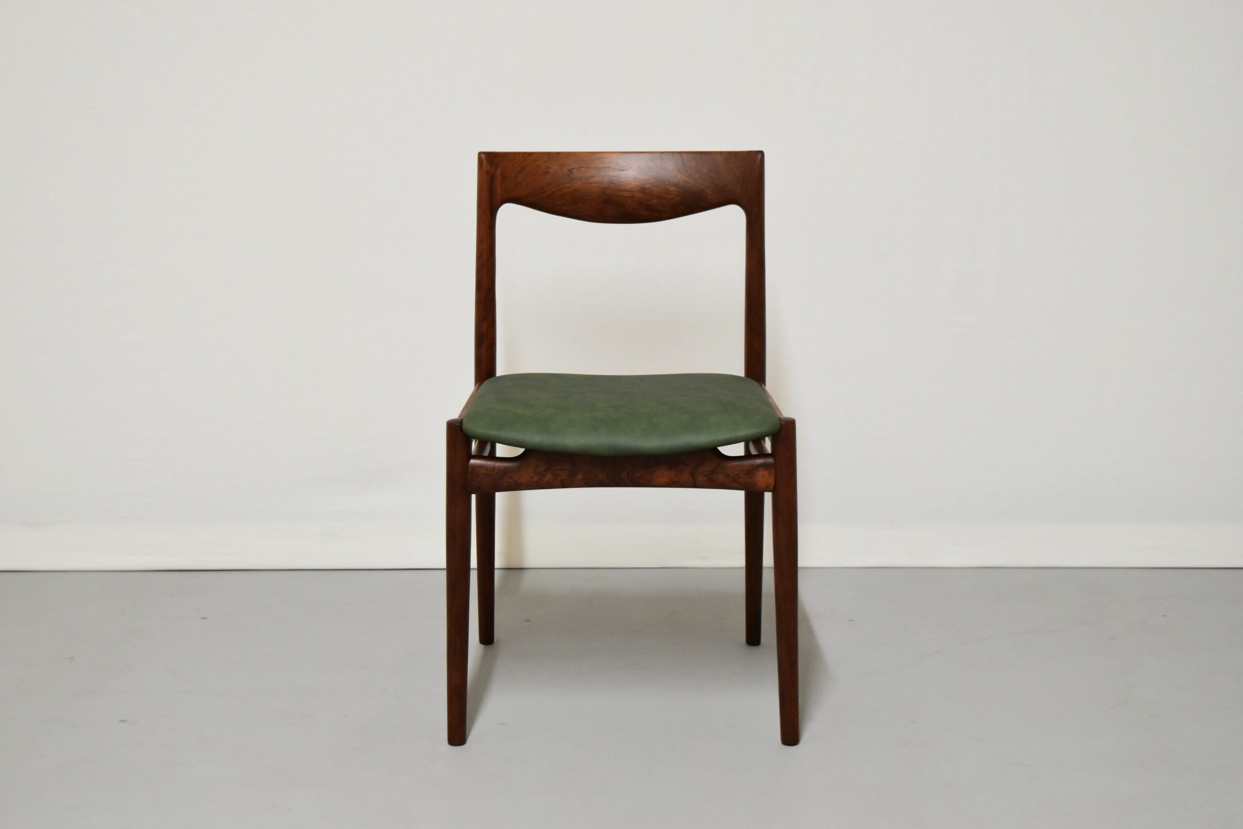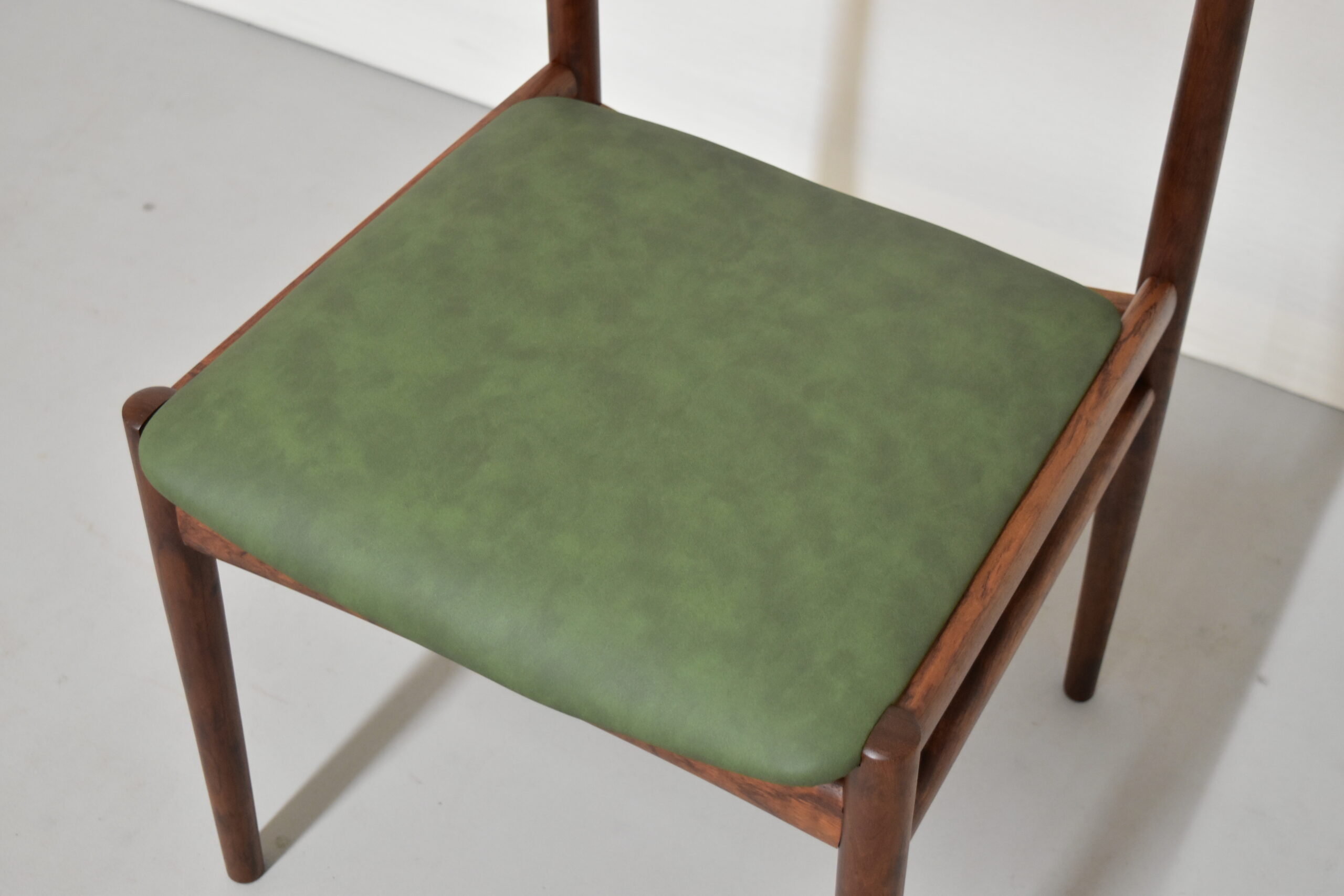 ご希望いただき、座面はグリーンのレザーで張り替えております。