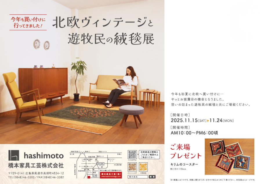 北欧でも人気の高い遊牧民の絨毯と共にご堪能ください。
