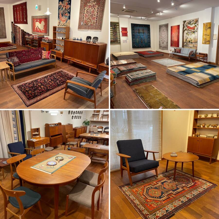 絨毯はアンティークから今年買い付けたばかりの最新のラグなど約300枚!ずらりと展示いたします。